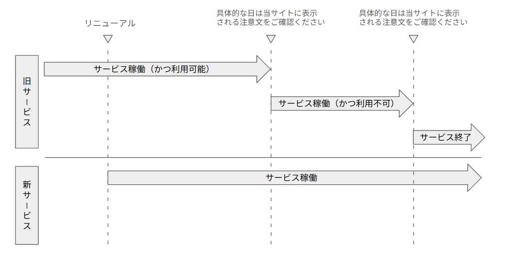 旧プラットフォームから新プラットフォームへの移行スケジュールは下記の通りでございます。